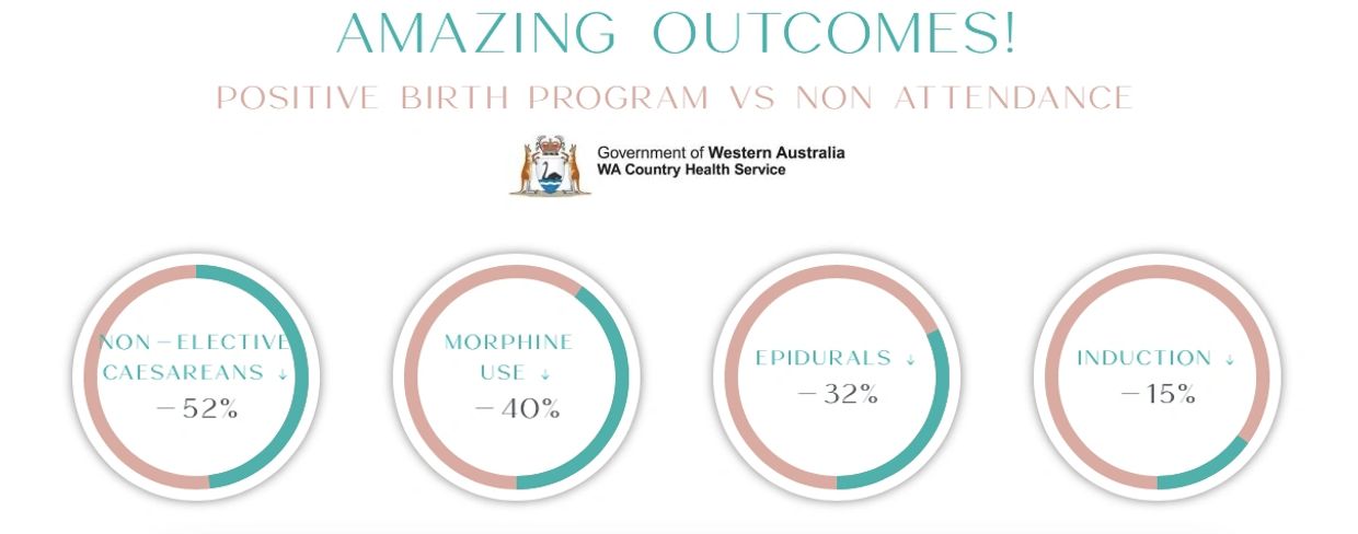 A study was conducted at Bunbury Hospital, Western Australia, comparing outcomes of parents who attended the Hypnobirthing Australia ‘Positive Birth Program’ versus those who didn't and the results speak for themselves!